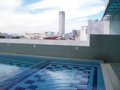 Hari kedua, di Penang. Pagi2 lagi hubby ku dah keluar ade urusan kerja. Sememangnya, tujuan utama kami ke Penang adalah sebab hubby ku itu ade urusan kerja. Sambil2 tu makan angin. So, tinggal lah kami bertiga. Kalo nak diikutkan, kami bertiga nak keluar sendiri2 saje jenjalan. Tapi hubby kata urusannya cuma sampai tgh hari saje. So, tunggulah sampai abis. Sementara menunggu, aku pun bawaklah anak2 lepak2 kat swimming pool. Memang dah ku duga, kalo bawak anak2 ni ke situ mesti merayu rayu nak minta mandi. Aku pujuk cuma boleh main air je. Seronok lah diaorg...